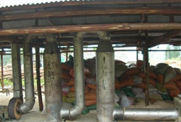 土窯的建造要選資源豐富,運(yùn)輸方便,坡度較小的空敞地作窯址,靠近水源,土壤要堅(jiān)實(shí), 好是粘土。在選好的窯址上,畫(huà)一個(gè)等邊三角形,每邊長(zhǎng)約2.1m。在線(xiàn)內(nèi)向下挖1m深左右,即為炭化室。炭化室前端略高于后端,在炭化室后面正中挖煙道腔和排煙孔,